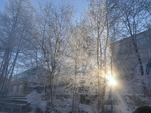 Day1:因为赶行程06:30早起吃了早餐,司机直接到酒店来接去魔界漂流看雾凇