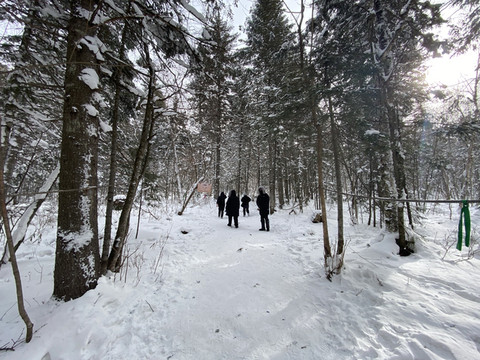 老里克湖上的雪很深,我们试着走进去一点,发觉太耗体力了,而且越走越深就放弃了。开始返回。不知道是不是因为耗体力出汗的原因,越走越冷,到达摩托点的时候我们直接就坐下去了入口去取暖了(168元一人)。我们六个人每个人的衣服都结冰了一样,头发睫毛全都结冰,脚趾都冻僵了。建议大家可以走上去然后直接摩托车下山。这样会更好。然后我们就回去二道白河镇。