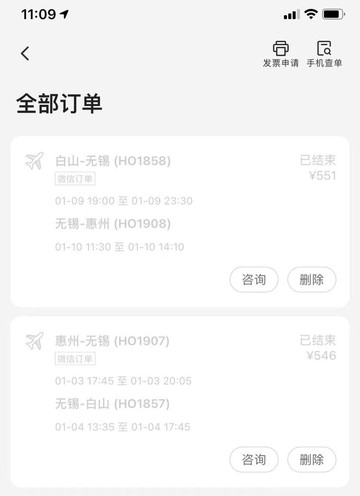 1. 航班-惠州中转无锡到长白山回程也一样(1100元)