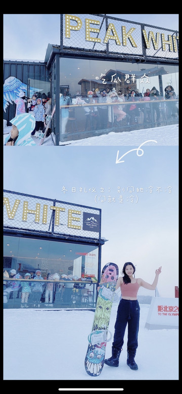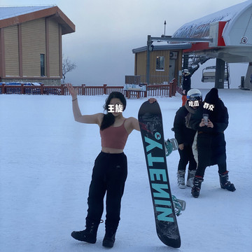Day3:今天也不需要早起。我们九点多出发去滑雪,到达滑雪场人不多,我们一行6个人只有一个人滑过雪,就跑去交自己女朋友,而我们四个人每人请了一个教练。而我直接单板上阵!(教练300一个小时)滑雪时间是两个小时,包括穿鞋子穿板的时间,其实最多一个半小时。教练人还不错,一个小时基本立刃、前刃、推坡、都学会了,没有摔个还很自豪,然后第二天自己在万达滑,差别大了很多一直摔。因为这边滑雪的人不多,雪道很顺很好滑,很适合初学者。而到了万达滑雪的人太多,滑道有凸起,一直摔。