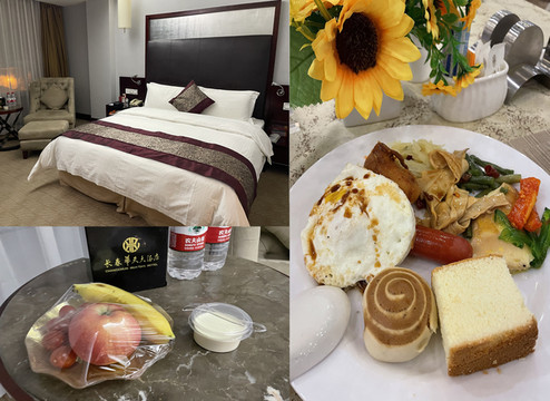 酒店是当地四星就的。虽然有点旧,但是房间的面积很大。携程订338元/晚,钻石卡可以免费享受一次早餐。还有欢迎水果提供。早餐味道还行吧,就是东北炒菜的味道和北方面条的味道。