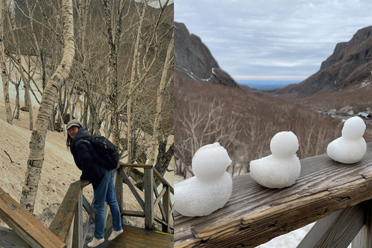 这里也算是本次旅行的最高点了吧。打卡完毕以后准备下山去小天池。路上看到一对小情侣在用雪做小鸭子,好可爱呀!小姐姐还招呼我去和小鸭子拍个照,千万走过路过不要错过。