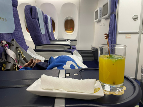晚上的航班居然经济舱全满哦,排队好长。头等舱不需要排队,直接检票进入。我选的第一排的座位,居然第一排就我一个客人。整个头等舱也就4个客人而已。空乘小姐姐让我的皮包坐在我隔壁的座位上享受头等舱待遇呢!