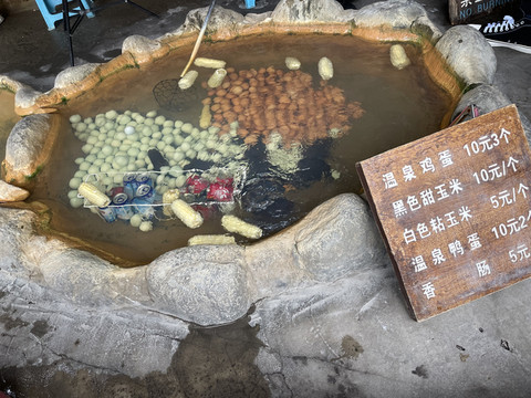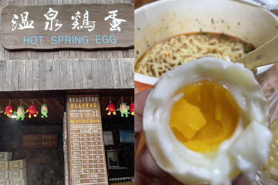 买了温泉鸡蛋和白色甜玉米一个。热热的还可以捂手。还在驿站买了一盒泡面吃,泡面15元/盒。