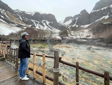 下天池后的下一个景点是长白山温泉:无数条热流从地底涌出,似群龙喷水,故名聚龙泉。各泉水温不等,一般在60℃以上,最高达82℃,属高热温泉。