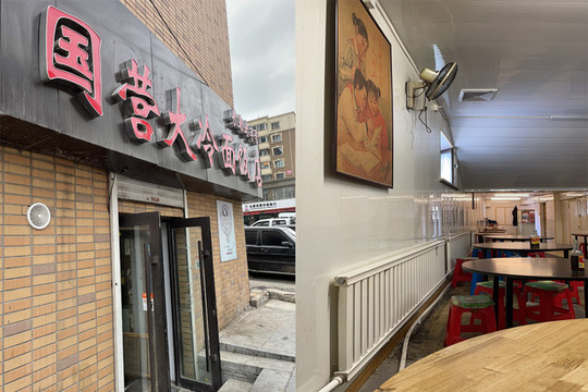 从我住的雅客假日酒店步行大约2公里。我是早上10点多去的,刚开门。店里的环境真的非常的80年代啊。很像小时候妈妈铁锅厂的厂房内景。连厨房做饭都是用木板的。很老派啊!