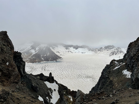 山上山下真的是2个极端哦。到达天池看到的是积雪。天池现在是个冰池。冬冻冰面雪一样的白,被16座山峰环绕。中国最大的火山湖,也是世界上最深的高山湖泊。现为中国、朝鲜两国的界湖。