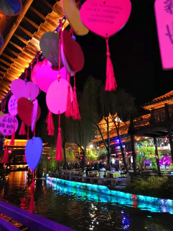 夜晚的灯火通明和人头攒动,确实比上次来的时候更热闹,熙熙攘攘的人群里,一边游玩,一边看顾着孩子们,反正也是拍照、找孩子、买吃的、买玩具,不过古镇的夜景着实的美;