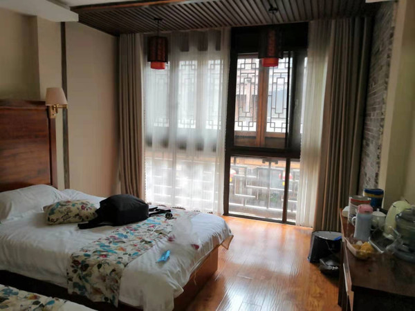 中午1点出发,下去3点多到,网上提前定了酒店,兰亭居一家很有古风味道的客栈,客栈是在景区内,站台房间里可看到景区的美景和往来的行人;老板很热情,还给了景区路线和表演节目单等;放下行李后,便带着一家游古镇,侄子和儿子是第一次来,所以格外兴奋;