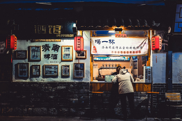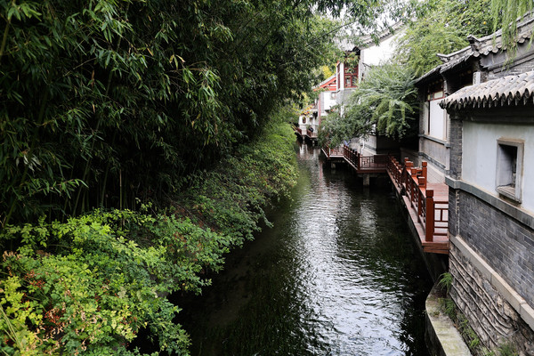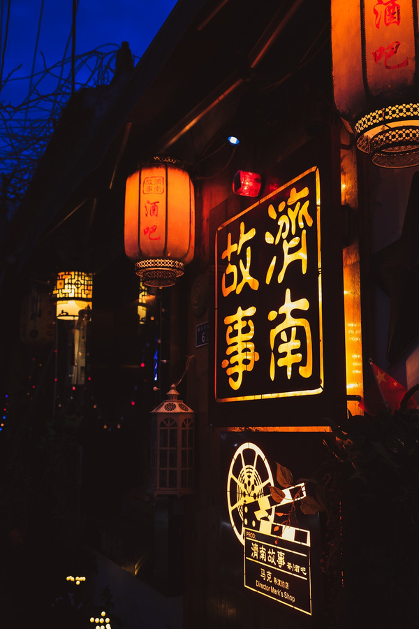 傍晚去大明湖南门对面的曲水亭街,这是一条被誉为北方小江南的济南老街,这里拥有江南风情的小桥流水与老济南的特色建筑,是每个济南人儿时的回忆。小桥流水,树影婆娑,还原了《老残游记》中“家家泉水,户户垂杨”的泉城风貌,不是江南,胜似江南。