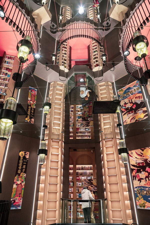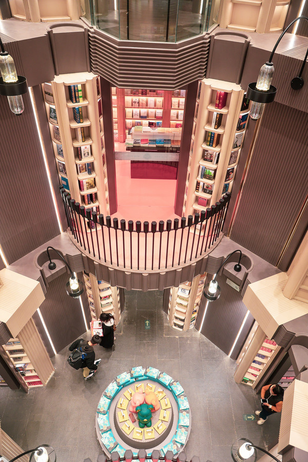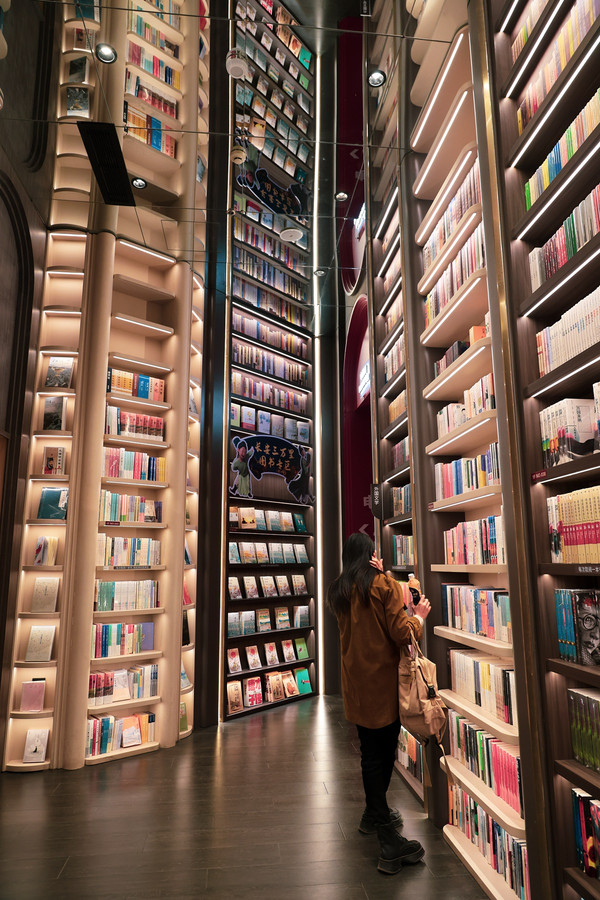装修设计延续了钟书阁简约时尚的特点,通过镜面反射和极简线条,打造出魔幻的视觉空间,不同的人从不同角度可以发现不同的美。