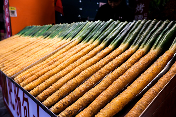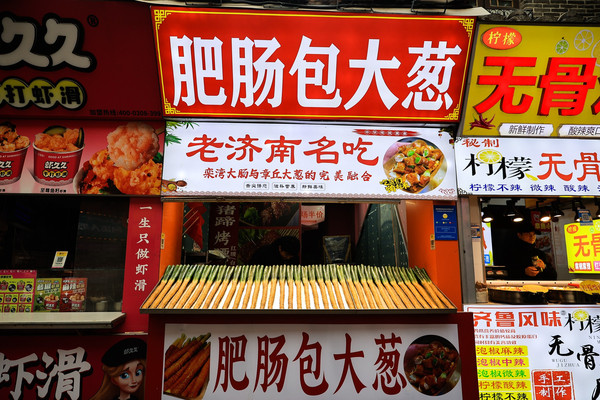 平行的芙蓉街因美食而出名,里都是各种夜市小吃,到晚上人气颇旺,热闹非凡。山东特色的煎饼卷一切,各种网红小吃,一路走下来只会感叹自己的胃口不够大。