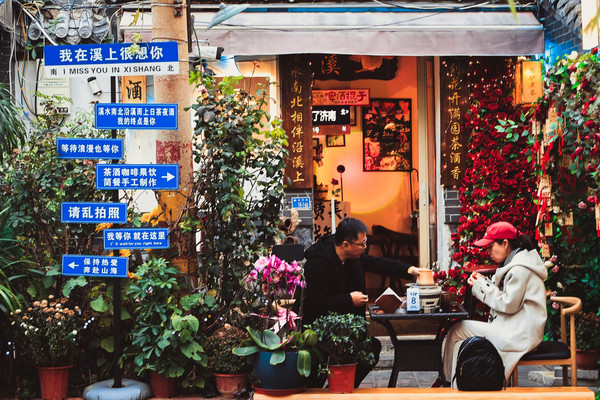 河道旁各种手工艺品店、茶馆、咖啡馆很是小资,阳光洒在青石板路上,吹来的都是和煦的春风,手捧杯济南府的咖啡,漫步在曲水亭街,享受古城的宁静和沉稳,如此愜意美好。