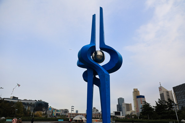 从趵突泉出来走过泉城广场,这是济南市的中心广场,矗立着的“泉标”取篆书“泉”字之神韵,是济南市的标志和象征。广场上和平鸽飞舞,风筝在空中飘荡,与城市天际线遥相呼应。