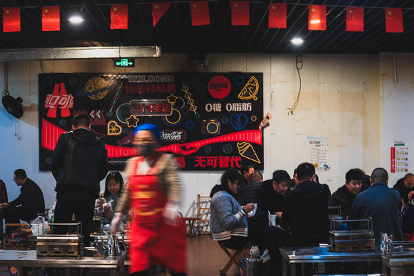 据说最早是因为明星来开演唱会吃的牧羊村,之后就一直处于爆火的状态。大概是冬天气温太低,没看到室外那种人挤人的状态,室内还是客人不少。