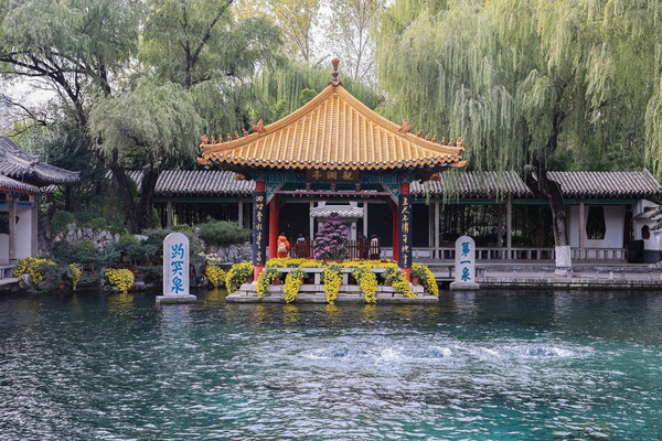 趵突泉又名槛泉,为泺水之源。趵突泉北临泺源堂,西傍观澜亭,东架来鹤桥,南有长廊围合,四方 360°皆可观景。