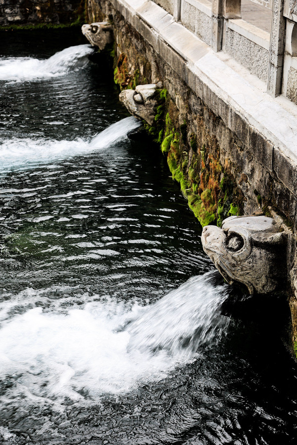 再往前顺着水道经过几个小泉眼,就到了著名的黑虎泉 。泉水经3个石虎口喷出,泻入池内,水流很大。很多人会在取水处打水,用黑虎泉的泉水泡茶,除了茶叶的清香,也多了一份泉水的甘甜。