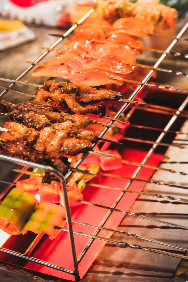 坐在小板凳上,扫码选自己想吃的肉肉,价格真的很实惠,一个人也可以吃。也可以和不认识的朋友拼单。味道整体来说无功无过,蒜辦肉、五花肉、橄榄、烤面包都不错,关键是氛围不错,很多人喝嗨了还一起唱歌,天南地北的朋友很happy。