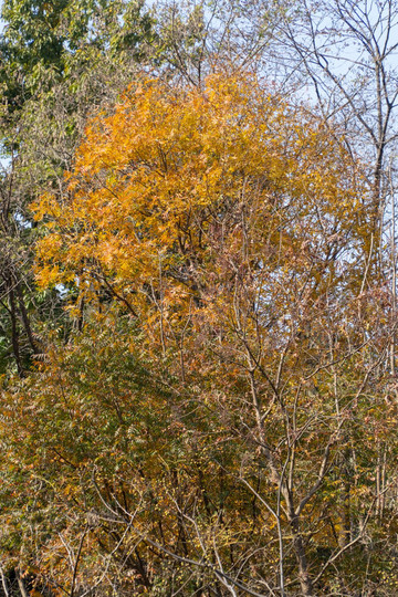 公园之中,群山缭绕,云阔风清。站在山脚,抬头遥望,山路漫长崎岖,树林茂密,路途清幽。耳畔是秋风萧瑟,眼前是人间颜色。各类树木葱茏生长,生机勃勃,焕彩勃发。这里有、刺槐、泡桐、青桐、山杏、酸枣、棠梨、樱桃、石榴。