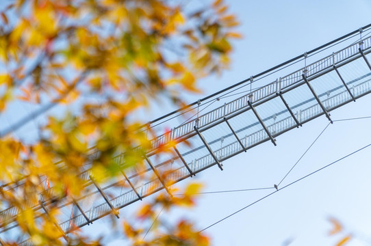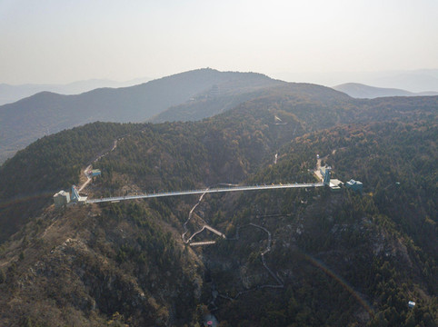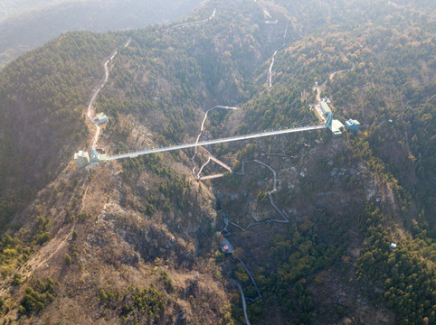 再往上就就是悬空的玻璃栈道,皇藏峪的玻璃桥不是很长,但也足够有些胆小的游客望而却步了。站在玻璃桥上望远方,方圆景色尽收眼底,玻璃桥的尽头标有“皇藏峪玻璃桥”的字样。