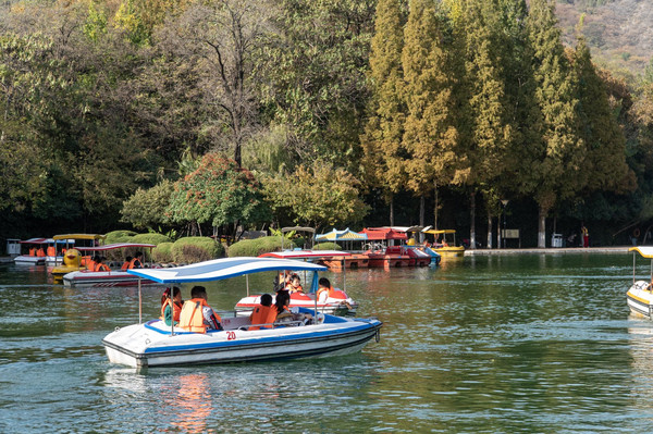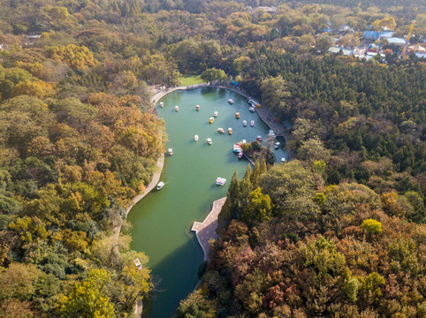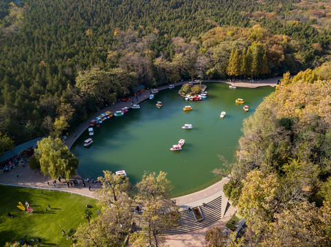 天池周围,花草茂盛。落叶片片,草地碧绿。人们争相打卡留念,都舍不得回去了。整座森林公园里,这里的风景最美,最引人驻足。若是有兴致,还可以泛舟湖上。看着深秋之中群山变色,一片火红。这是自然对人们的褒奖。远离都市,独享宁静,这样的惬意,别处怕是找不到了。