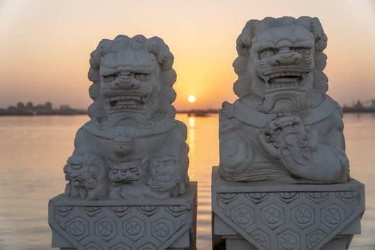 汉白玉狮子桥上,小狮子活灵活现,在夕阳的照耀下,予人极强的视觉冲击力。