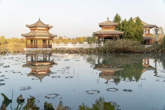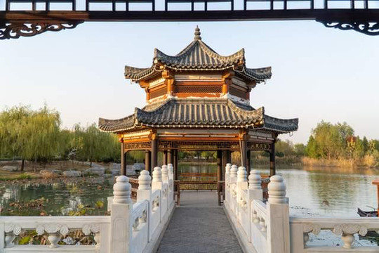 隋唐运河古镇位于淮北市相山区南黎路与长山路交口东南侧,占地面积约960亩,总建筑面积约79万平方米。由五凤三阁景区、水镜戏台、漕仓堰闸景区、茶道石舫、闸口盘车景区、运河天地等部分组成,呈现独特且丰富的隋唐运河古镇文化。
