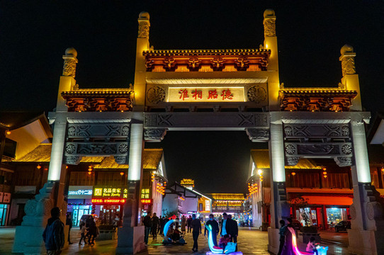 前面说了淮北市的历史很短,所以这个古镇也是近几年新建的,但夜幕下的运河古镇灯火辉煌,非常的热闹。古镇不大,但吃喝玩乐什么都有。