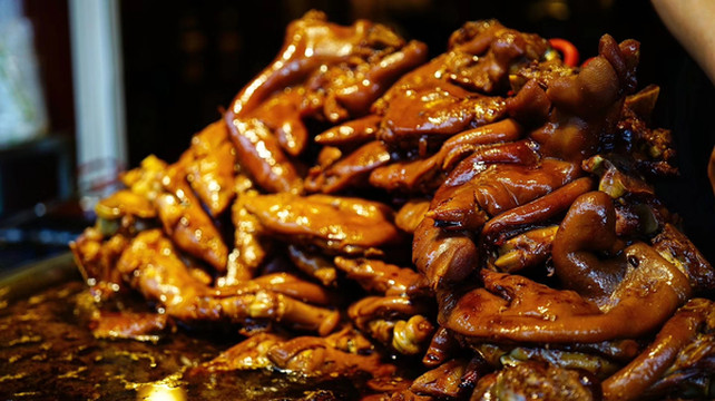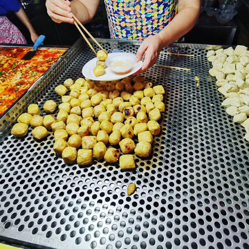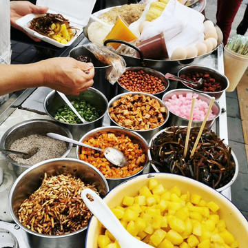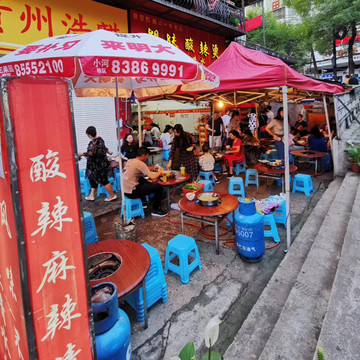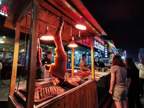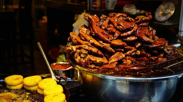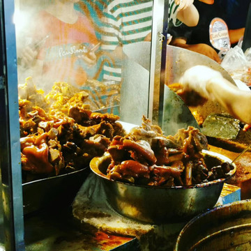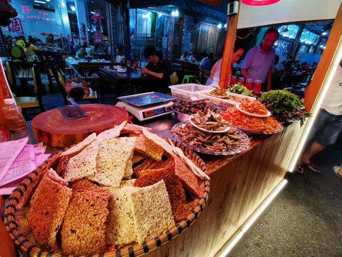 晚上回到贵阳,逛吃贵阳二七路小吃街。直接兑换卡,一条街都可以刷,当然直接微信支付也是可以的,环境很好。豆腐和猪脚好好吃,这里的辣椒面也太好吃了吧?小弟们辣椒面不要钱那样给我撒,辣到飞起,但也好好吃!!金牌罗记肠旺面没我们昨晚在市场那一家的好吃。打包个乳鸽回去吃,这一堆放一起,好像千与千寻里面那个美食节的场景。我发现贵阳跟重庆一样,都不喜欢普通话,直接用本地话跟你对话,然后阿屁听不懂,问她要不要红油,她说好,然后加了满满三勺。她一脸懵问我怎么这样,哈哈哈。