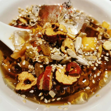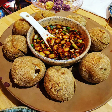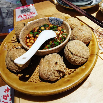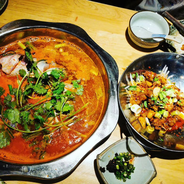 贵阳初见面!到达以后吃晚餐。第一餐决定吃老凯俚酸汤鱼,去了最多人的省府店。来到早,不用等号,伙计问我要什么鱼,我问他推荐我什么鱼,他说尖嘴鱼吧,我说鱼骨会很多吗?他说不会,哦,那就是只有嘴巴很尖咯(喂!)具体来说下这个鱼,这里跟云南一样都配个蘸水碟,然后不知名香料好多,香茅味很重,感觉像加强版的冬阴功,很开胃很好吃,我也说不出个所以,反正很厉害。那个豆腐圆子也很好吃,切开泡芙那样的,把中间蘸水弄一点进去一起吃,蘸水里面有鱼腥草,是的,这里都是鱼腥草狂热份子,什么都有鱼腥草。红糖糍粑也很好吃,绵密米香浓郁,我妈一定超级爱吃这个!猪脚软糯入味,小串也很好吃,是在重庆吃到那样的味道,玫瑰冰粉也不错,最后清盘,好吃好吃!