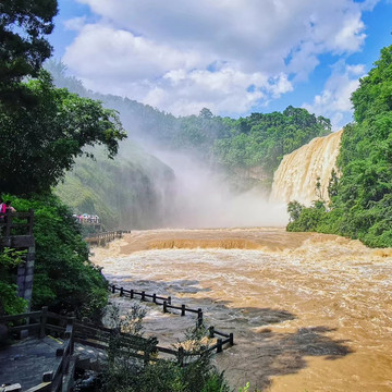 今天是黄果树一日,因前几日大雨,水帘洞和七星桥下段都封闭了,旺季加暑假,排队排好久,肉眼可见的一下阴天一下大晴天。雨后水位暴涨的陡坡塘,跟小时候电视里看到西游记师傅走过的景象有点出入,这水量,白龙马都能给你直接冲走。美女榕好像飞天舞女,还有长在石头上的仙人掌。情怀打卡黄果树大瀑布,大满足!太好看!太震撼了!我忍不住又想背诵一遍课文,“黄果树瀑布,真是一部大自然的杰作!”(喂!)当然,我又在这里看到了徐霞客,这个全国大小景区都去浪的家伙。