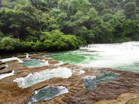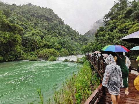 今天是大七孔和小七孔。早上一直下雨的小七孔景区,在忽大忽小的雨水中感受山水动静之美。趟过溪水到达翠谷瀑布的时候已经全身湿透了,我不敢带相机下来,也还好没带下来,但我看到有个爸爸带着孩子和相机直接泡溪水里玩耍了,那个,现在尼康相机已经可以泡水那么高级了吗?