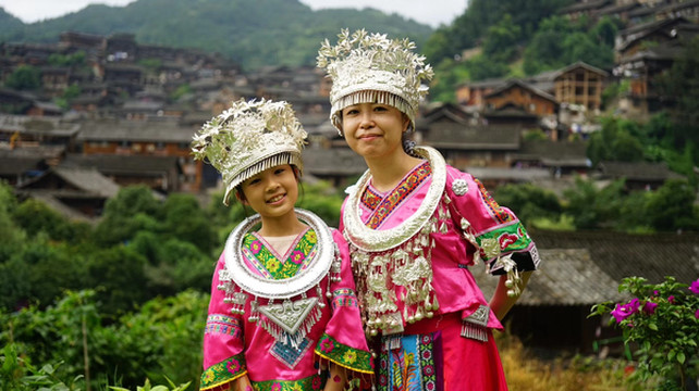 逛完大七孔小七孔,下午长途跋涉到达西江苗寨,坐车为什么需要安全带和扶手呢?因为怕我们睡着的时候摔倒,我睡到整个人歪出过道去了,真的开了好久,困到我劈叉。到达苗寨我们住第一号风雨桥,等于穿越了整个寨子才到我们那。放好行李去进行打糍粑活动,新鲜热乎很好吃,小朋友都是去摆拍的,因为他们根本连锤子都抬不动,哈哈。然后苗服体验,完了再去长桌宴晚饭,饭后坐电瓶车去观景台看千户苗寨夜景,嗯……我觉得白天比较好看。