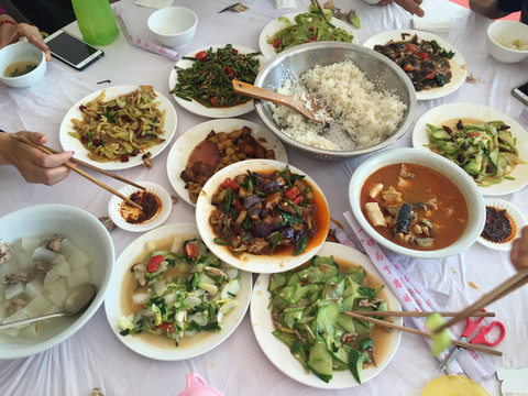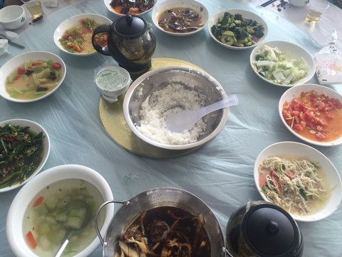 中午吃饭后合影,这里的午餐真的不是一般的难吃。。。虽然很特别,叫做千桌宴。没吃饱赶紧买点吃的。