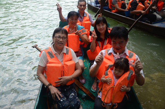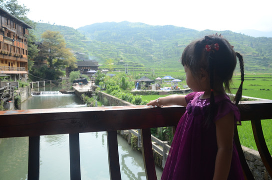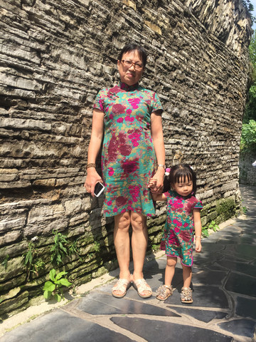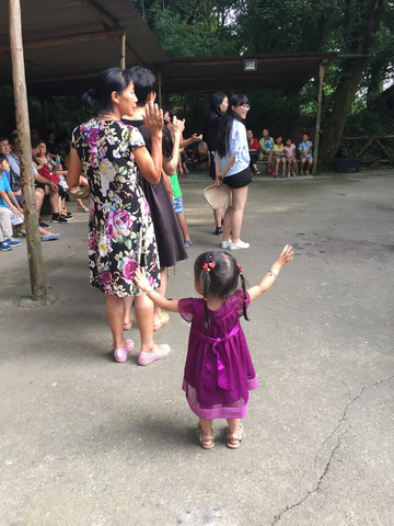 两个妈妈和小家伙跟着上去跳舞,也挺欢乐。游览完毕就在景区用餐。之前在景区表演的人又变成了传菜小妹,真厉害!