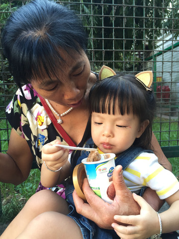 给小汤圆奖励了一支雪糕,因为她乖乖走路了。