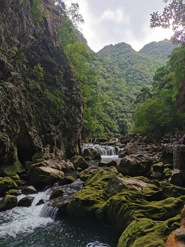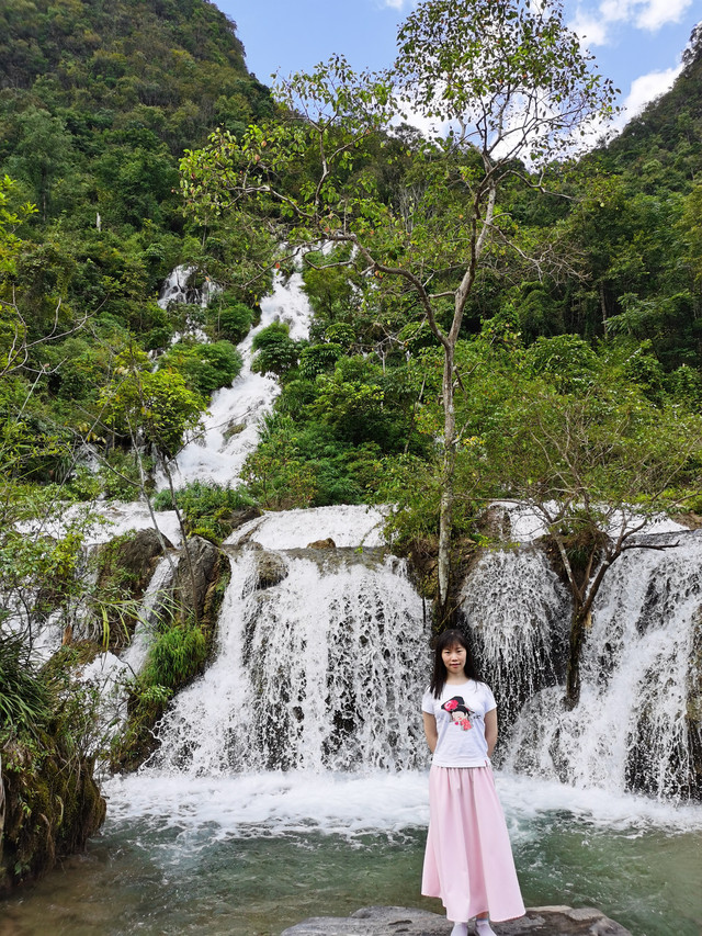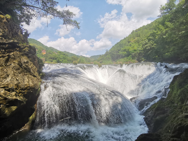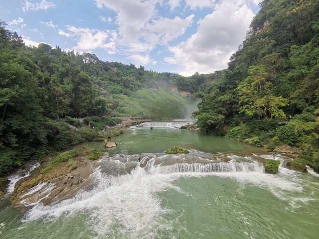 首先是天星桥瀑布,一般如果跟多日团的话,天星桥瀑布只走半程,这也是我为什么订一日游深度游的原因。前面半程走到高老庄就结束了,没什么特别的景点,后半程天星桥和银链坠潭瀑布才是整个景区的精华,瀑布是整个黄果树这里最美的风景,像一张张镶着钻石般的婚纱礼服裙摆,我词穷,只能说太美了!另一组家庭不愿意走,于是自行返回门口等我们。导游就带着我们两个人,徒步下半程。年轻人脚步轻快,而且我们也没有狂拍照,于是本来三个小时的行程,我们两个小时就完成了。
