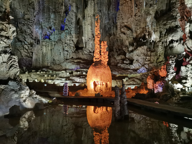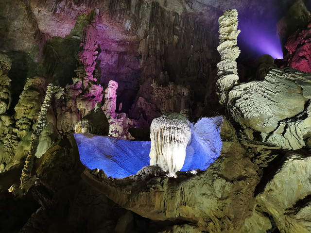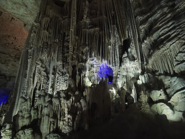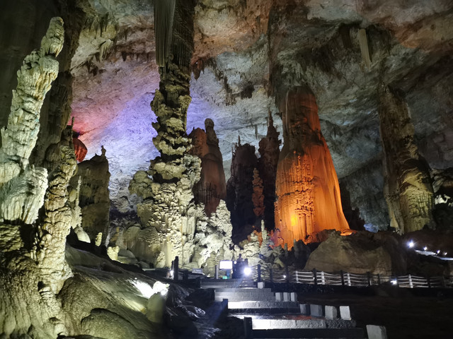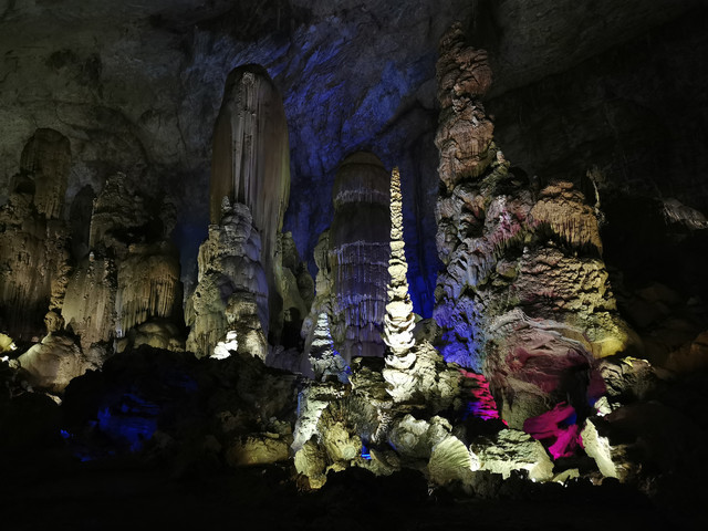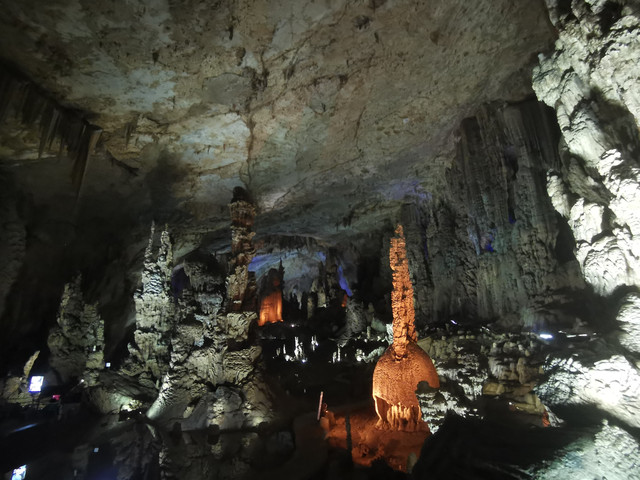 织金洞非常的大,走一圈就走了两个小时。与其他窑洞不同的是,他并没有用五颜六色、色彩缤纷的灯光去衬托这些钟乳石,而是用的白光,这样可以更清晰地看到织金洞里的景象,更加的原生态。光线有点暗,拍出来其实不太好看。但确实很大也很奇,当然主要是胜在大,窑洞都是那么一回事。出来之后可以乘观光车返回起点,大约12:20就到了。午餐也在起点附近的一家酒店,没有一个硬菜,基本全是素菜和个别小荤,但是感觉吃的挺清肠挺舒服的,米饭也很好吃。吃完大概一点半,我们就返程了,4点前就到了贵阳,今天的行程还是比较轻松的。