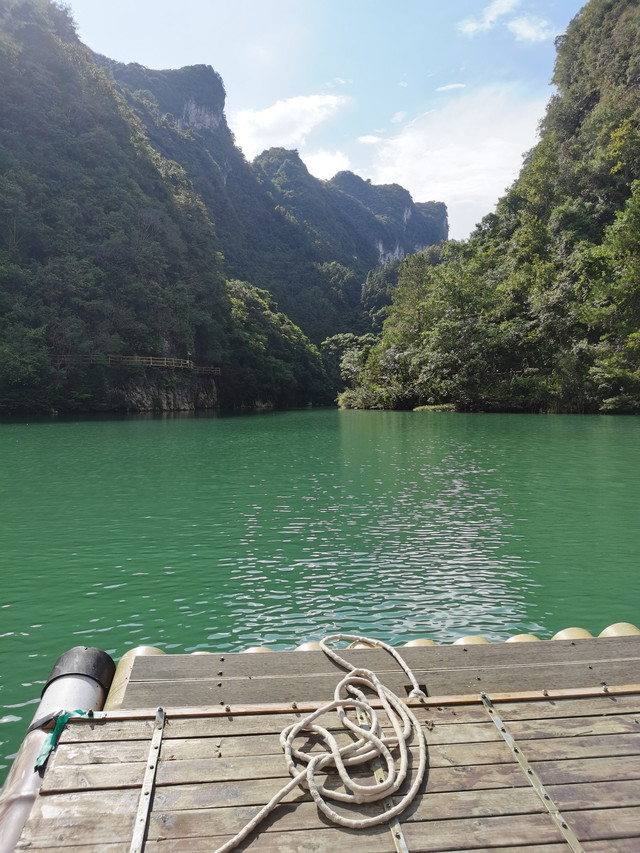 在二进宫结束的时候,船夫会问我们说是原路返回,还是继续走,并告诉我们至少要走40分钟的山路,然后再坐第三趟船。兔兔先前已经做过攻略,后面的路没啥可看的,于是便考虑返回。这时候小磨楚做了一个非常错误的决定,他坚持要继续走不回头。果不其然,只有一个不大的观音洞和一个麦田。为了节省体力,兔兔还战战兢兢的乘了滑索飞跃峡谷40/人。第三趟船是在室外一个叫璇塘的地方,其实就是条小河,没啥可看的。最终走了许多冤枉路,兔兔直接炸毛了!