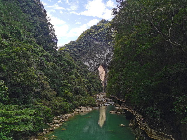 龙宫风景区是狭长的,全程不走回头路,先是乘观光车到龙宫的另一头端,然后再两次坐船到一个相对中间的一个位置,然后再走大概3公里左右1个小时的山路,出山后再坐两公里的船,最后走10几分钟的路到景区游客中心旁边的出口。