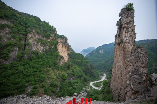 这条外界并不算知名的红岩大峡谷,其实总长度有二十多公里,始于山西晋城王莽岭,弯曲延伸至河南的郭亮村,刚才我们从锡崖沟挂壁公路行驶时,路边就有很深的山沟,其实那就是红岩大峡谷,只不过被峭壁上的杂树杂草遮挡了视线,看的不是太清晰。