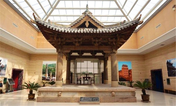 晋城博物馆为现代建筑,外观采用传统建筑的重檐、翼角模式,四角攒尖玻璃屋顶。