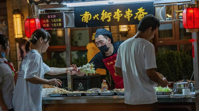 各式糖画,栩栩如生;“香”飘十里的臭豆腐,大排长队;个大饱满的毛头丸,让人食欲大振……各类手作文创,特色美食,成为南大街最美的风景。品尝着各色美食,徜徉在明清风格的建筑中,体会着一份独有的闲情逸致。