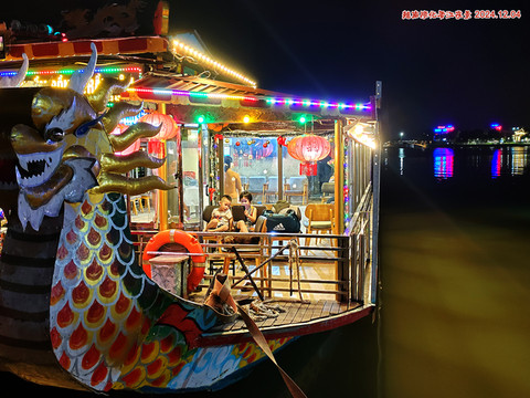 2、香江夜游(☆);香江夜景美在灯火辉煌的花船。大桥的灯光和江边的灯光无法与国内相媲美。登上花船主要是观看很一般的表演。在江中走很短的一段距离。连大桥都不穿越。其实在江边看看足矣。