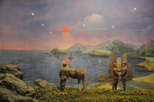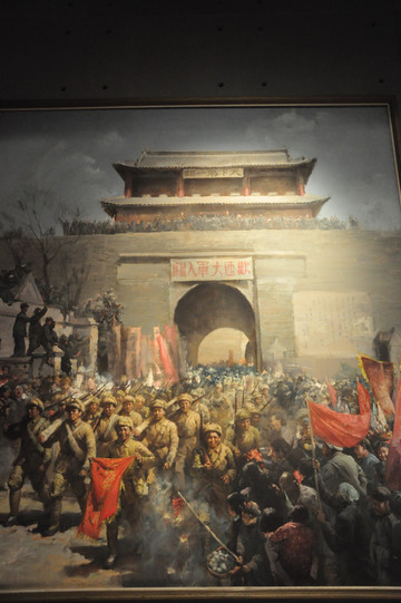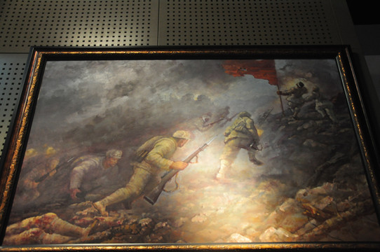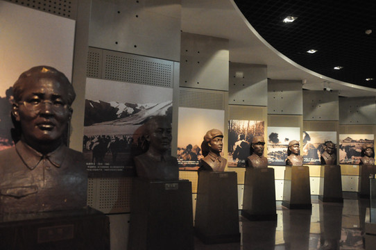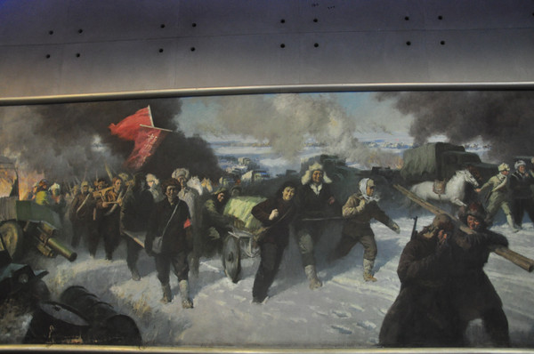 当天是星期天,当地市民和游客参观的人非常多。进入纪念馆大厅,我们先是往左进入支前馆和英烈馆,顺路而下,怎么也没有看到战史馆,感觉不对,工作人员疏导着人流,不让走回头路,不得已,我们又返回到大厅,正对大门的才是战史馆,差点错过。