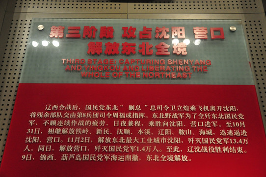 辽沈战役纪念馆成立于1958年12月,原址设在锦州大广济寺。1978年10月,叶剑英元帅题写馆名。1985年4月29日,经中共中央、国务院、中央军委批复在锦州修建新馆,新馆坐落在辽沈战役革命烈士纪念塔北侧,于1988年10月31日落成开放。2001年辽宁省委、省政府决定对我馆进行全面改陈改造,于2004年11月2日竣工并重新对外开放。2008年3月1日起,作为全国首批博物馆、纪念馆向社会公众实行免费开放。