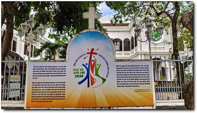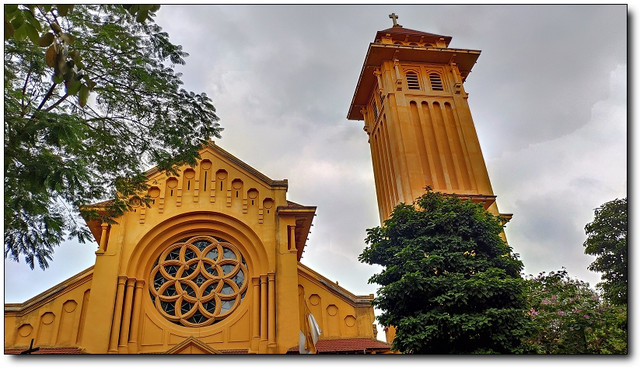 以教堂高大钟塔上的风向标为标志,又被称作雄鸡教堂,是越南中部最大的西方教堂。