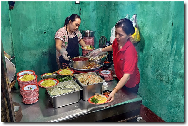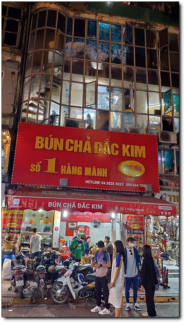 晚餐找到 Bun cha Dac Kim(店名),品尝极具越南特色的 “Bun cha ”,该食店始创于1966年,如今在河内共有五家分店(①1 Hang Manh、②67 Duong Thanh、③8a Hoang Ngoc Phach、④168 Nguyen S?n、⑤168 Nguyen Son),其中前两家已有50多年历史了,是 Bun cha 骄傲,最古老的餐厅。