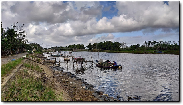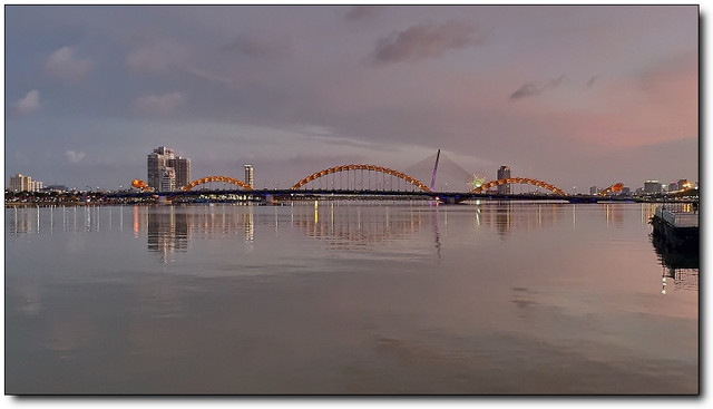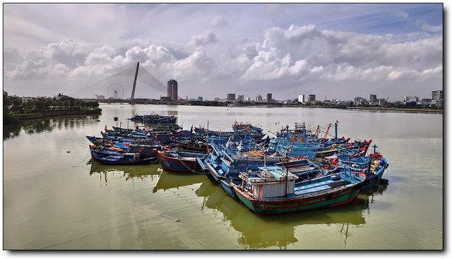 韩江上泊了不少渔船,远处的摩天轮处就是岘港亚洲公园。