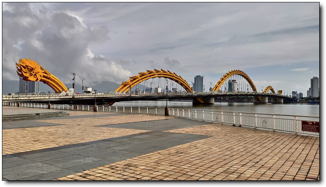 龙桥旁边有座 DHC Marina 雕像,酷似新加坡的鱼尾狮,其实它是龙身鱼尾像,龙嘴可以喷水,算是岘港的新地标。